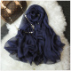女士围巾礼物实用韩版真丝顺纡绉褶皱春季丝巾披肩纱笼纯色宝蓝色