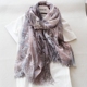 棉麻丝巾女 民族风围巾春秋款防晒围巾大青花瓷围巾薄带扫把流苏