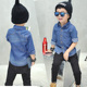 崽崽童品男童长袖衬衫中大童上衣2017春秋装新款童装儿童牛仔衬衣