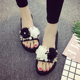 韩版时尚黑色拖鞋女夏季坡跟防滑凉拖松糕跟沙滩鞋厚底平底人字拖