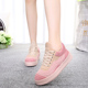 2017春秋韩版骚粉色多层板鞋厚底真皮单鞋女鞋毛毛虫鞋系带休闲鞋