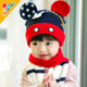 2015韩版新款时尚女儿童保暖帽冬天米奇加绒耳朵球球加厚护耳帽子