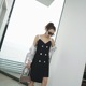NOPINK原创自制 大牌质感毛边吊带不规则设计修身西装式连衣裙