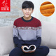 招财鸟青年男士保暖内衣加绒加厚羊毛衫韩版学生针织衫保暖套装