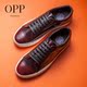夏季OPP男鞋 时尚英伦休闲鞋男士日常系带牛皮潮板鞋真皮休闲皮鞋