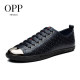 夏季新款OPP男鞋 男士时尚休闲板鞋英伦牛皮压花真皮低帮鞋 潮鞋