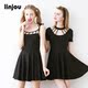 linjou玲玖2017修身系带高腰无袖学院风复古赫本风小黑裙连衣裙