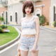 linjou玲玖日系俏皮软妹胸衣小背心上衣+高腰短裤子女夏两件套装