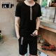 2017新款夏季男士t恤短袖套装V领中国风男夏装潮流休闲t恤两件套