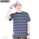 Remedy潮牌夏季猫咪刺绣纯棉圆领海魂衫黑白条纹短袖t恤男潮