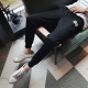 2017春新款韩范圆领长袖破洞破烂中长款水洗纯棉t恤男学生打底衫