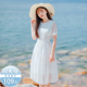 yoyo自制 清风徐来 白色修身高腰蕾丝连衣裙中长款短袖圆领木耳边