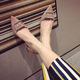 欧美新款夏季露趾粗跟绒面细带套脚弹簧凉鞋蛇形缠绕低跟性感女鞋