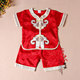 新款男童短袖唐装套装大红色周岁生日庆生装民族中式儿童表演服夏