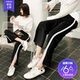 侧边开叉条纹萝卜运动裤薄款夏九分韩版光头强小脚休闲校服长裤女