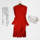 2017春季女装 大红镂空花边中长款针织连衣裙毛衣