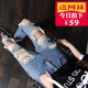 春装新款哈伦裤做旧毛边破洞牛仔裤女宽松九分裤显瘦乞丐裤渔网袜
