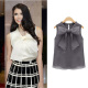 欧洲站新款女装高立领修身蕾丝雪纺衫短袖无袖网纱上衣潮夏装2017