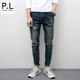 2016原创日系夏季男士牛仔九分裤小脚裤款修身韩版破洞牛仔裤男装
