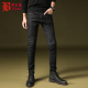 巴卡帝秋季弹力中腰洗水牛仔裤男士小直脚男裤子修身直筒休闲长裤