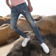 春夏新款浅色牛仔裤男士时尚潮流九分裤青年破洞乞丐裤小脚裤长裤