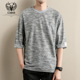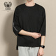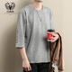 日系宽松亚麻男士短袖t恤韩版修身圆领潮流七分袖五分半袖体恤男