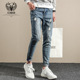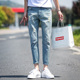 春季新款2017男士破洞九分牛仔裤男韩版修身潮流夏季薄款小脚裤子
