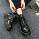 2017春秋新款厚底马丁靴女英伦圆头时尚复古短靴森女系带黑色单靴
