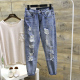 2017韩国东大门春装新款韩版蓝色做旧撕毁牛仔裤磨白显瘦宽松潮女