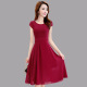 雪纺连衣裙女2017新款夏装时尚韩版修身中长款气质短袖a字裙夏季