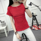2017新款夏装镂空针织t恤女短袖时尚修身纯色圆领套头打底衫上衣