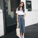 2017夏季新款韩版女装吊带竖条纹连体裤高腰九分裤休闲裤阔腿裤女