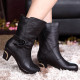 秋冬新款女鞋真皮中筒靴高跟圆头蝴蝶结粗跟女靴子中老年妈妈鞋