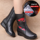 民族风秋冬妈妈鞋棉鞋女真皮中靴坡跟中筒靴防滑中老年女靴子皮靴