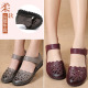 鞋子女单鞋平底真皮妈妈鞋软底平跟民族风中老年休闲鞋女老人鞋春