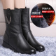 秋冬新款真皮中筒靴坡跟软底中老年女靴妈妈中靴棉鞋防滑女士皮靴