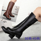秋冬新款真皮女鞋子大码中跟单靴粗跟马丁靴中筒靴子厚底妈妈棉靴