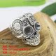 925纯银戒指空托男款定制DIY镶嵌琥珀蜜蜡骷髅头银戒指托活口戒托