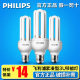 飞利浦节能灯泡3U 8W11W14W 紧凑型E27 E14 白光黄光三基色光源
