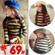 进口童装儿童秋季新品/现货/PC喇叭袖条纹T恤A3739