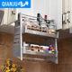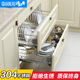 浅居拉篮304不锈钢双层调味厨房橱柜厨柜碗篮阻尼小拉篮抽屉碗架