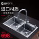 舒美特手工水槽拉伸双槽大小304不锈钢厨房加厚洗菜盆洗碗池套餐