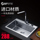 舒美特手工水槽拉伸单槽大小洗菜盆厨房304不锈钢加厚台下盆套餐