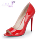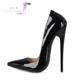 夏性感超高跟12cm漆皮细跟黑色鱼嘴高跟单鞋黑色高跟职业鞋大码43