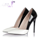 春秋四季性感超高跟鞋12Cm细跟尖头拼色单鞋黑白色时尚职业鞋女43