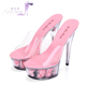 甜美花朵超高跟15CM细跟防水台凉拖GZ透明水晶鞋婚鞋宴会新娘鞋