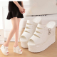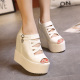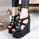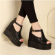 坡跟超高跟凉鞋女2017春夏新款镂空鱼嘴鞋松糕厚底内增高夜店女鞋