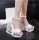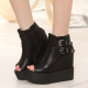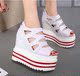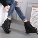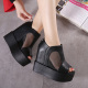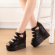 2017春夏新款坡跟凉鞋女内增高网纱厚底松糕鞋夜店性感鱼嘴高跟鞋