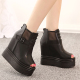 2017新款松糕鞋子女厚底坡跟凉鞋时尚春夏内增高女鞋黑色鱼嘴单鞋