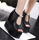 欧美2017春夏新款超高跟凉鞋松糕跟厚底鱼嘴单鞋女内增高坡跟女鞋